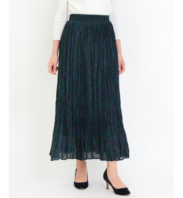 リーフプリントプリーツロングスカート