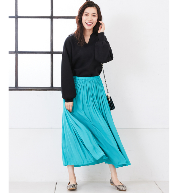 【送料無料】 ウエストからたっぷりのギャザーを施し、歩くたびに揺れるドレープが綺麗なギャザースカート。ツヤ感のある上品で軽やかな素材とウエストゴムの履き心地が魅力です。コーディネートの主役になること間違いなしのカラースカートを取り入れれば、いつものトップスもぐんとこなれたスタイルに。 リヴドロワ/RIVE DROITE スカート|スカート