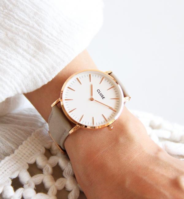 【送料無料】 <CLUSE (クルース)>オランダ発のウォッチブランド。”あなたの最高の瞬間を切り取る”をコンセプトに、時間を見る一瞬さえも美しさを感じることができるように、エレガンスでシンプルにデザインされた時計を作成しています。こちらは、フェイスサイズ38mmの人気のシリーズ「ラ・ボエーム」。ステッチを施したシックなカラーのレザーバンドに、ピンクゴールドカラーのフェイスが上品かつ華やかな印象です。ベルトの付け替えはイージーレバーを採用しており、工具を使わず30秒でベルト交換ができる事も嬉しさの1つ。時計も軽い為使い勝手が良く、シーンを選ばず、ご愛用頂けます。プレゼントや保管時に嬉しいケース付き。■ムーブメント:日本製※商品お届けの際の納品書は、お買上日を証明する書類として保証書と共に大切に保管して下さい。(コマ詰めや、修理などの際に必要となります。) ※こちらの時計をお買い求めの場合、電池サービスカードは付属しません。予めご了承ください。店舗にてお問い合わせの際は、下記の品番をお申し付け下さい。品名:1843-499-0624 品番:TF CLUSE L 38mmFACE WC※画像の商品はサンプルです。実際の商品と色味、仕様、加工、サイズ、素材等が若干異なる場合がございます。■その他 「CLUSE」 はこちらでCHECK★ ビューティアンドユース ユナイテッドアローズ/BEAUTY&YOUTH UNITED ARROWS BEAUTY&YOUTH UNITED ARROWS|小物|腕時計