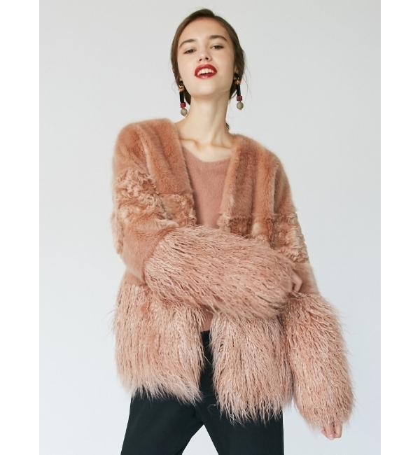【送料無料】 足の長さが異なるエコファーを組み合わせたショートコート。昨年注目を集めたLAGUNAMOONのHIT商品がリニューアルし再発売!!NEWカラーは大人が着れるCHICなピンクです。※フロント部分:ホック有になります ラグナムーン/LAGUNAMOON アウター|その他