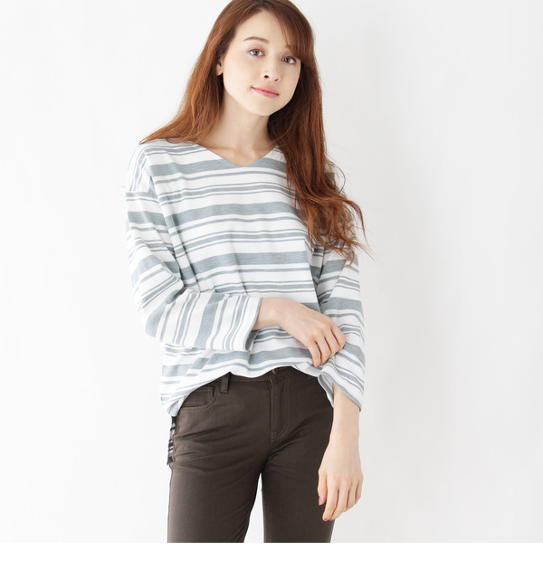【3000円(税込)以上で送料無料】 マルチボーダー柄のプルオーバーです。肌ざわりがもっちりしてやわらかいポンチ生地を使いました。浅めのVネックで首元スッキリ。春らしい花柄スカーフ合わせもおすすめです。モデル情報:身長165cm B84 W61 H89 着用サイズ:02(M)店舗へのお問い合わせ商品番号:C62-14002主に春に着用いただける商品です。 中国製 シューラルー/SHOO・LA・RUE SHOO・LA・RUE|トップス|Tシャツ・カットソー