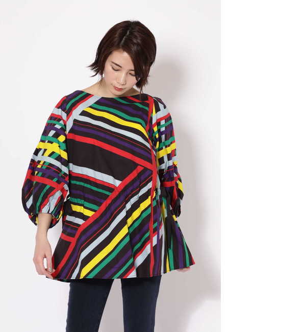 [HLAADA FOR ROSE BUD]マルチストライプビッグスリーブブラウス