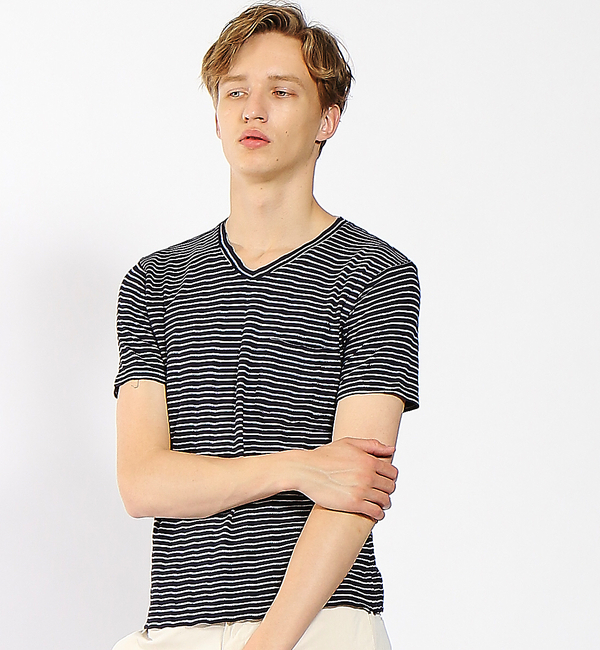 【送料無料】 シャリ味のあるT/Cとブライトレーヨンを使った清涼感のある多組織サッカーボーダーTシャツです。カジュアルはもちろん、セットアップのインナーとしても活躍します。モデル:185cm/C87/W72/H93/着用サイズ46 アバハウス/ABAHOUSE ABAHOUSE|トップス|Tシャツ・カットソー