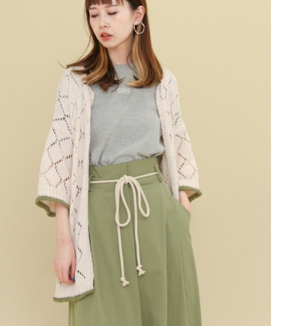 【送料無料】 ・・・・・・・・・・・・・・KBF COLLECTION2018 SPRING/SUMMER”PIECE”・・・・・・・・・・・・・・春のマストアイテム、カーディガン。ボタンが無いガウンカーデだからこそ、気兼ねなく羽織れますね。透かし編みや、袖先・裾に取り入れたバイカラーがポイント。シンプルなコーデにプラスしたくなる1着は、デイリーアイテムとしてワードローブに加えておくと◎フリンジベルトは取り外し可能なので、お好みでウエストマークしてもOK。※この商品は素材及び編地の性質上、着用中、着脱時、及びアクセサリー等で引きつれ、引っ掛かり易い為、取扱いにはご注意ください。※この商品は、強い日光や照明を長時間受けますと変色の恐れがございます。ご着用や保管の際は、充分ご注意ください。 ケービーエフ/KBF トップス|ニット・セーター