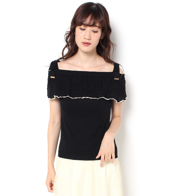 【送料無料】 シルクが入った肌触りの良いオフショルニットです♪パイピングがポイントのアイテム◎◎肩ひもはお好みで調節できます◎ ルゥ デ ルゥ/Rew de Rew トップス|ニット・セーター