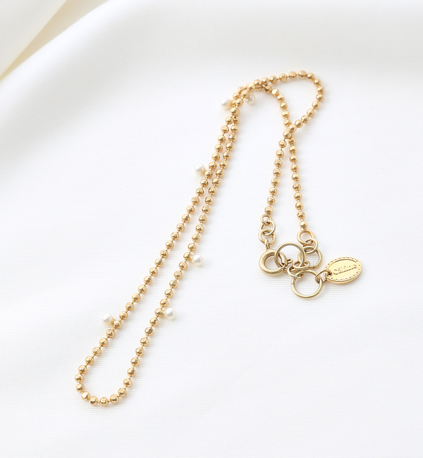 【送料無料】 ボールチェーンに小さなパールがちりばめられたネックレス。華奢なデザインが女性らしさ◎カジュアルな装いからパーティーまでデイリーで使えるアイテムです。【Caline Paris(カリンヌ パリ)】パリで活躍中のアクセサリーアーティスト「asamin」が手掛けるブランド。 蚤の市で見つけたアンティークパーツを使用し、現代風のアレンジを取り入れたアクセサリーを制作。ブライダルアクセサリーとしても使える温かみのある商品が展開されている。 ルージュ・ヴィフ ラクレ/Rouge vif la cle Rouge vif|アクセサリー ・ヘアアクセサリー|ネックレス