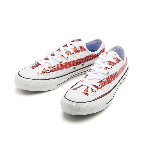 【送料無料】 CONVERSE(コンバース)の2017SPRING&SUMMERコレクションアイテム。オールスター生誕100周年記念モデル「ALL STAR 100」のアレンジモデルの登場。アメリカ国旗がモチーフのオールスター。ストライプ柄のスパンコールを全面に採用。「ALL STAR 100」共通スペック(OXカット)・クッション性が向上した新しいインソール「REACT」を採用・防滑性を向上させた新アウトソール「トラクションソール(TRACTIONSOLE)」採用・メモリーフォームでホールド感を向上させたタンを採用・ロゴのすり減り軽減コーティングを施したオリジナルヒールラベルを採用・撥水加工シューレースとコーティングハトメで黒ずみ軽減・フォーム内蔵のメッシュライニングには消臭抗菌加工を採用・オリジナルタグ、カートン付属コーディネートのポイントになるコンバースらしいポップな一足です。 エービーシー・マート/ABCマート CONVERSE|シューズ|スニーカー