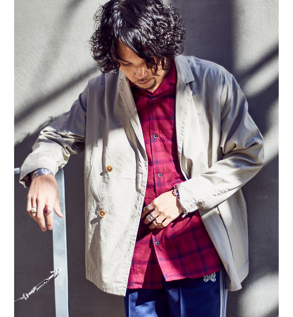 【送料無料】 今季注目のダブルジャケットはシャツ感覚で使える優れモノ!!シャリ感のあるブロード生地を用いることで軽く着やすい仕上がりになっております。カーディガンのように羽織るだけでスタイリングが決まります。カチッとし過ぎると懸念しがちなジャケットですが、シャツ地であれば気軽に使えるのでオススメです。トレンドのトラックパンツやワイドパンツとの相性も抜群なので、ワードローブに取り入れて頂きたいアイテムです。※サンプルでの撮影の為、付属などの一部仕様が変更になる場合がございます。あらかじめご了承ください。 チャオパニック/CIAOPANIC アウター|ブルゾン・スタジャン,その他