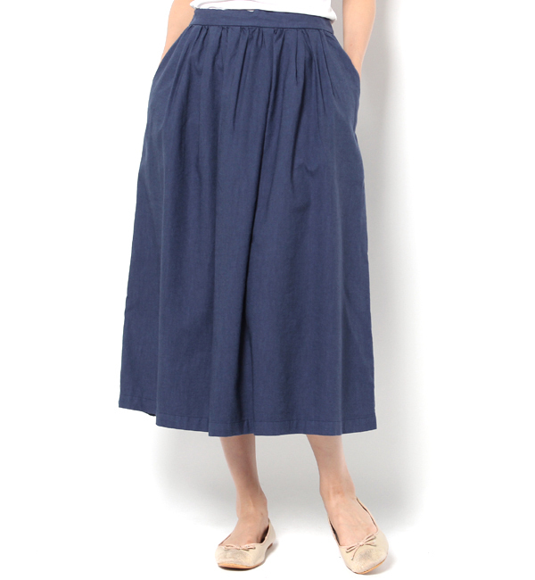 【送料無料】 <LA MARINE FRANCAISE>着丈がしっかりあり、大人フェミニンスタイルにぴったりのミドル丈のスカートです。ギャザーの分量もほどよく、動くたびに優雅に揺れる様がより女性らしさを演出します。落ち感のあるテンセル素材にコットンと麻を織り交ぜることでナチュラルな風合いも加わり、着こなしの幅もぐっと広がります。ウエストは後ろだけにゴムを入れることで履きやすさがありながらも、フロントはすっきりとしているので、トレンドのトップスインのスタイリングにも対応。今すぐ履ける生地感でありつつ、ほんのりと秋のエッセンスも感じられるスカートです。 ニーム/NIMES MARINE FRANCAISE|スカート|スカート
