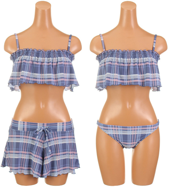 【送料無料】 カジュアルで着こなしやすいデザインの総柄ビキニに、お揃いのショートパンツが付いた3点セットです。上辺にシャーリングを施したフリルビスチェはストラップの取り外しが可能。内蔵ブラトップのアンダーも自在に調節できるので、お好みのフィット感で着用していただけます。 サンアイミズギラクエン/三愛水着楽園 水着・スポーツ|ビキニ