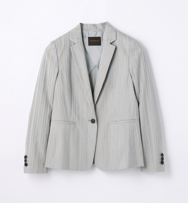 【送料無料】 ポリエステルレーヨンのモール糸を使用したテーラードジャケット。凹凸感と色による陰影でストライプ柄を表現し、シャープな中にも暖かみのある今年らしい表情に仕上げました。地襟に使用したサテン素材がさりげないポイントなので、後ろ襟を立てて着用するのもおすすめ。シックながらも華やかさがあり、シンプルなコーディネートに羽織るだけでさらりと決まる存在感のあるアイテムです。店舗にお問い合わせの際は、下記の品番をお申し付けください。品番:13077407001※※お取扱い上の注意※※素材の特性上、色移りしやすい性質があります。湿っている際の摩擦は特に色移りしやすい為ご注意下さい。 トゥモローランド/TOMORROWLAND TOMORROWLAND collection|ジャケット・スーツ|テーラードジャケット