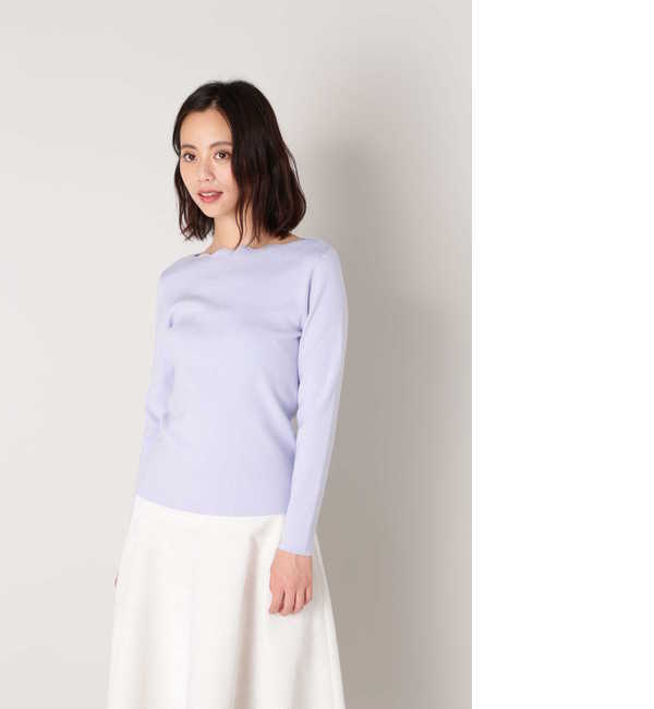 【送料無料】 デコルテ美が自慢の今季らしさ満点なスカラップネックニット。シンプルデザインをベースにしているので、甘すぎずコーディネートに取り入れられます。程よくボディに沿った女性らしいシルエット、フレアスカートやワイドパンツまで着回しできる1枚です。 ナチュラルビューティーベーシック/NATURAL BEAUTY BASIC トップス|ニット・セーター