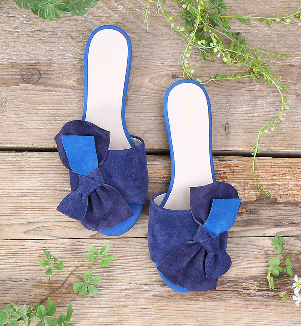 【送料無料】 リボンのモチーフを取り入れたフラットサンダルは、つま先に開きを入れて真夏にも合わせられる一足。リボンがつま先にかかるデザインなので、つま先を見せる事に抵抗がある方へもオススメです。さらに、裏表の色をコンビで仕上げたリボンは、裏返して配色で見せる事も可能です。ビビッドなカラーの足もとで、春夏のコーデをフレッシュにアップデート! オゥ バニスター/Au BANNISTER AU BANNISTER|シューズ|サンダル