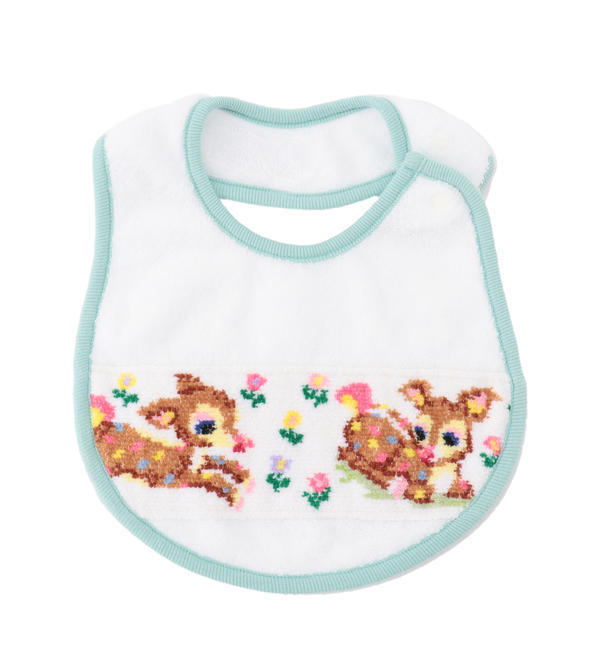 【送料無料】 可愛らしいタッチで描いた『ツンツンバンビーノボーダー』のスタイです。パイピングデザインのスタイで、小さなお花をちりばめたバンビ部分はシュニール織を使用しました。ハンカチとセットにして出産のお祝いの贈り物としてもおすすめです。 ラブラリー バイ フェイラー/LOVERARY BY FEILER LOVERARY BY FEILER|ベビー|スタイ