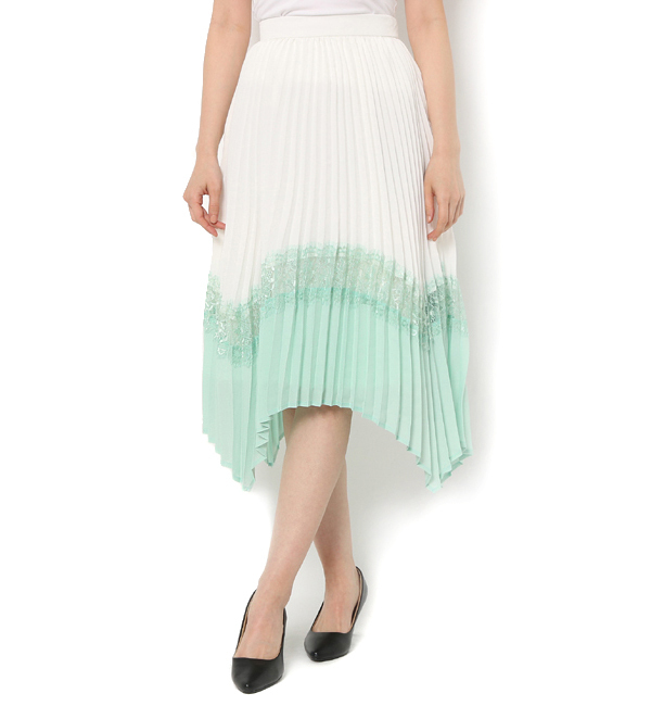 【送料無料】 一点投入で装いがパッと華やぐプリーツスカートは、レース切替でいっそう可憐な仕上がりに。ウエストはバックのみゴムを配して、穿き心地はノンストレス。ミモレ丈で上品に着こなせる1枚は、デイリーからデートまで、幅広いシーンで活躍してくれます。 ファビュラス アンジェラ/Fabulous Angela スカート|フレア