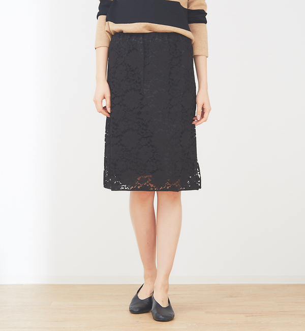 【送料無料】 花柄の総レースを使用したタイトスカートは、落ち着いた大人カラーで品良く着こなしたい。またウエストはバックゴム仕様なので、穿き心地も楽々です。同素材のブラウス(60360205009)と合わせたセットアップコーデもオススメです。 コレックス/collex collex|スカート|スカート