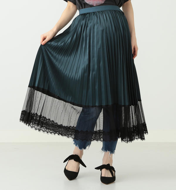 【送料無料】 サテンにプリーツ加工を施したラップスカート。スカートの端はあえて重ねずに、下に合わせるボトムが見えるように隙間を開けたデザインに仕上げました。裾はチュールとレースで切り替えでエレガントな印象に。お持ちのパンツやスカートの上に重ねてレイヤードスタイルをお楽しみください。デニムやライン入りのパンツなど、カジュアルなボトムの上に重ねたカジュアルなコーディネートが今季はおすすめです。 ビームス ウィメン/BEAMS WOMEN Ray BEAMS|スカート|スカート,フレア