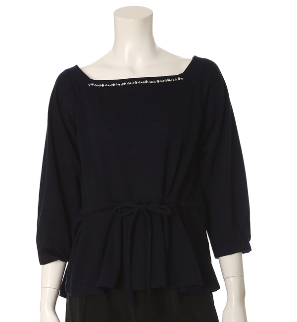 【送料無料】 デコルテラインをすっきりと魅せるビジューがあしらわれたネックラインが目を惹くカットソー。主張し過ぎず上品にコーディネートにアクセントを与えてくれるため大人の女性らしいブラッシュアップしたスタイリングに仕上がります。ウエスト周りと袖口のストラップで表情のある着こなしを楽しめるのもポイントです。・裏地なし ・水洗い可 エフデーゼ/EFDEISEE ef-de L|トップス|Tシャツ・カットソー