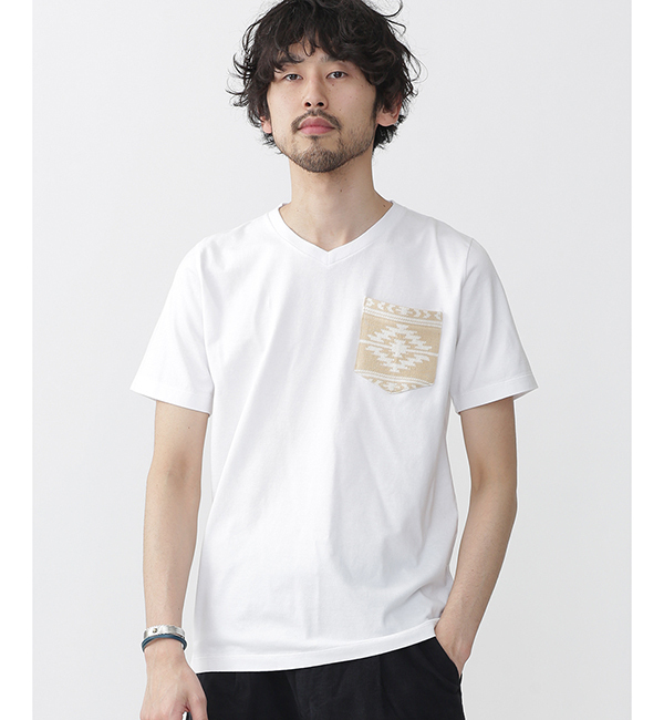 異素材ポケットVネックTEE SS