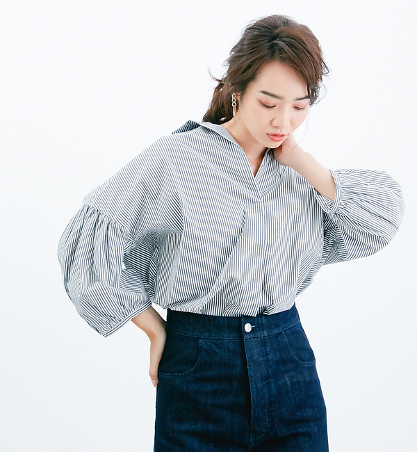 【送料無料】 今シーズンマストのバルーンスリーブブラウス。肩線をぐっと下に持ってきて落ち感のある大人っぽいシルエットに仕上げました。抜き衿デザインでさらに今っぽさをプラス。トレンドを詰め込んだ1枚です。(オフホワイト)model:H172 B80 W60 H85 着用サイズ:FREE(ブルー)model:H170・ B82・ W58・ H85 着用サイズ:FREE ルージュ・ヴィフ ラクレ/Rouge vif la cle Rouge vif|トップス|シャツ・ブラウス