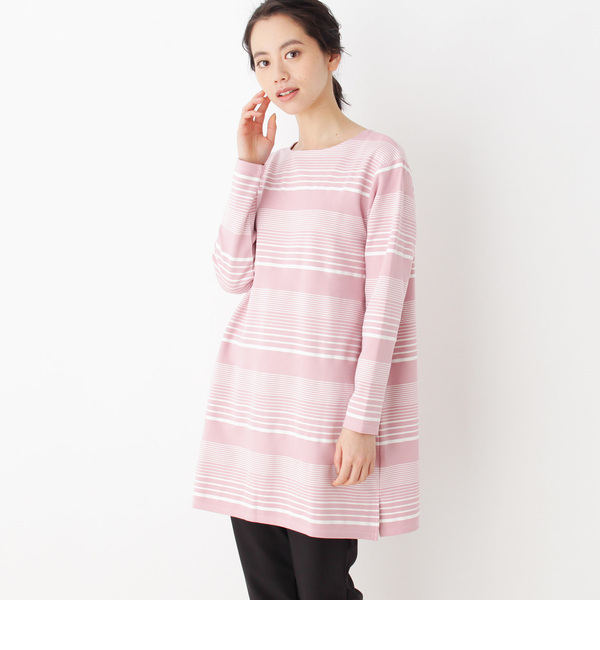【送料無料】 ピッチを変えることで大人顔に格上げしたランダムボーダーのワンピースです。ボディラインをひろわないゆるめのシルエットとヒップが隠れるチュニック丈がポイント。スキニー合わせのコーデがおすすめです。モデル情報:身長163cm B78 W58 H84 着用サイズ:99(FREE)店舗へのお問い合わせ商品番号:316-54022主に春に着用いただける商品です。 中国製 シューラルー/SHOO・LA・RUE SHOO・LA・RUE / Mrs.|ワンピース|ワンピース