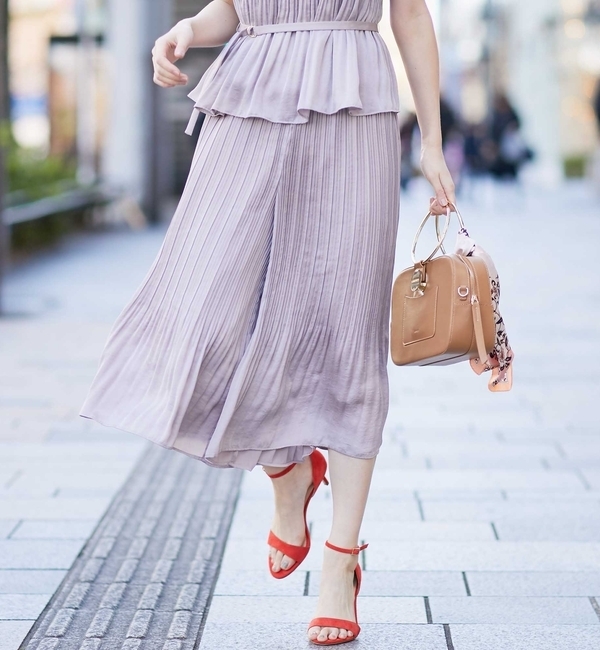 【送料無料】 プリーツが上品な印象と女性らしいイメージのワイドパンツ。艶やかな素材とミモレスカートにも見えるシルエットで、軽やかなプリーツが風に揺れて大人っぽい印象に。ウエストはゴム仕様でリラックス感のある履き心地なのもうれしいポイント♪セットアップでコーディネートできるよう、トップスのご用意も!(CO18B0047120100でチェック♪)結婚式の二次会やちょっとしたパーティーにもちろん、カジュアルなカットソーやニットと合わせてデイリーユースもできるボトムスはワードローブにぜひとも加えたいアイテム!※撮影場所やお使いのモニター環境により若干お色味が異なる場合がございます。特にロケの撮影では明るく見える傾向にございます。トルソー撮影画像で色味をお確かめくださいます様お願いいたします。※予約商品はサンプルで撮影をしております。若干の仕様が変更になる場合がございますので予めご了承の上ご注文くださいますようお願いいたします。 コラージュ ガリャルダガランテ/COLLAGE GALLARDAGALANTE パンツ|チノ,その他