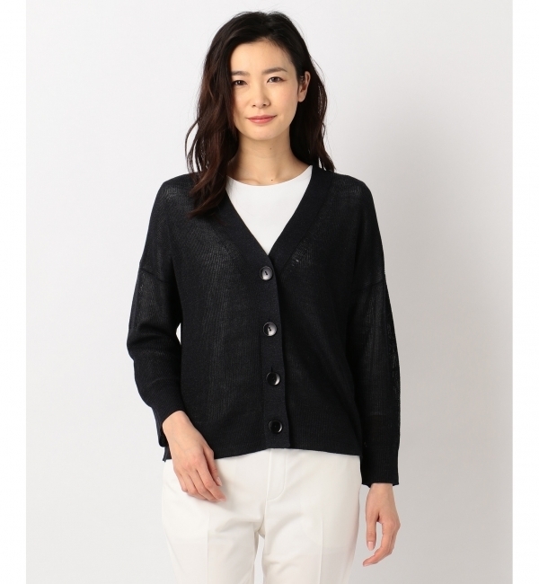 【送料無料】 ボリュームボトムに欲しい美バランスのショート丈。 ■商品説明コンパクトなショート丈のVネックカーディガン。ハイウエストのワイドパンツやスカートと相性が良く、ボタンを全てとめてプルオーバー風に、ボタンを外してカーディガンに、と色々な着こなしが楽しめます。■素材?UV機能:紫外線を透しにくい ?COOL機能:接触冷感機能あり ?手洗い可の盛夏にぴったりな機能性に優れております。清涼感のある麻にソフトな風合いのテンセルを加えた素材を使用。微細なラメを編み込むことで上品な輝きが生まれ、羽織るだけで大人の印象に仕上げてくれます。▼同素材アイテムミドル丈カーディガン(品番:KRWMYM0411) ドルマンスリーブショートカーディガン(品番:KRWMYM0410) ※麻の素材特性上、黒などの繊維が混入している場合がございます。また、摩擦や引っ掛けにお気を付けてお取扱いくださいませ。※水洗いで多少縮む場合がございます。 ベトナム※生産の都合により素材・原産国が変更になる場合がございます。 ジユウク/自由区 自由区|トップス|カーディガン