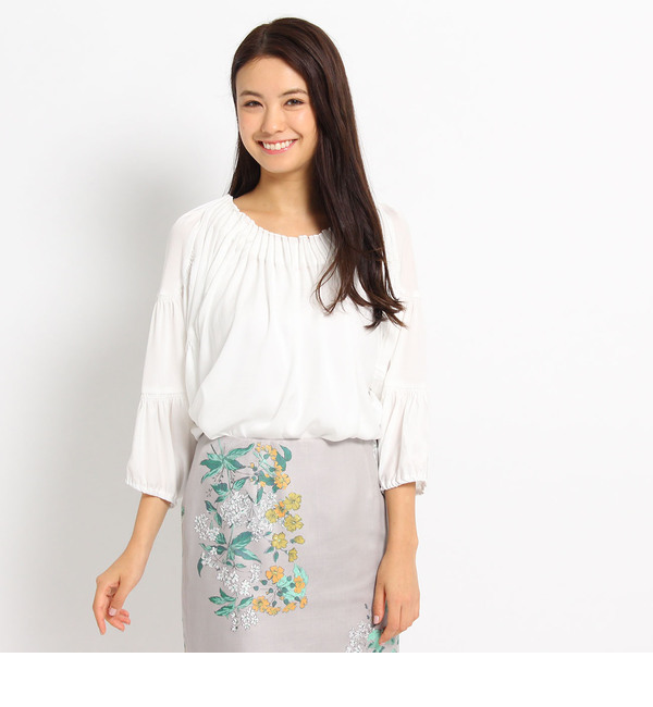 【送料無料】 軽い素材を使用し、タックやギャザーをふんだんに使ったデザインブラウス。袖のボリューム感がポイントになった一枚です。スカートやパンツなど、ボトムにインしたスタイルがおすすめ◎モデル情報:身長170cm B82 W58 H85 着用サイズ:38店舗へのお問い合わせ商品番号:545-83064主に秋に着用いただける商品です。 スーナウーナ/SunaUna SunaUna|トップス|シャツ・ブラウス