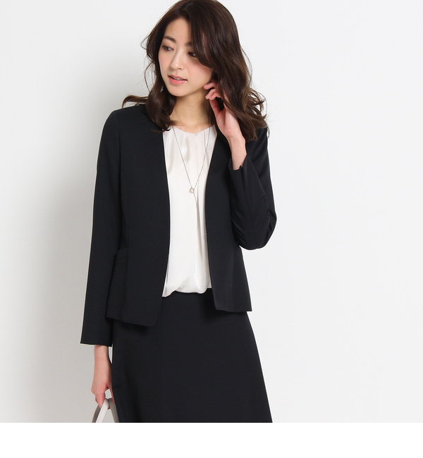 【送料無料】 美シルエットと着心地にこだわった、上質ウールSuper130's使用のカラーレスジャケット。素材の風合いが美しく表現されるよう、手間ひまかけられた、こだわりの素材を採用しました。無駄のないミニマルデザインが洗練された印象、お顔まわりを上品に、そして女性らしく演出します。フロントはホックデザインを採用し、さらっと軽く羽織れる仕様に。またハンドステッチ使いが、高級感を演出します。袖を通しやすい上質な裏地を使用するなど、見えない部分にも配慮しました。同素材のボトムやワンピースとのセットアップで、正統派スーツスタイルに。合わせるインナーやアクセサリーで、お好みの雰囲気にアレンジして頂けます。こちらの商品はセットアップでご利用いただけます。(画面左上の検索タブで番号検索いただけます)テーラードジャケット:153-42805カラーレスジャケット:153-42806フルレングスパンツ:153-62805クロップドパンツ:153-62806タイトスカート:153-72805※セットアップでご購入頂く場合カラーナンバーを合わせてご注文下さい。サイズ違いの商品もご用意しております。R:153-42106モデル情報:身長170cm B82 W58 H85 着用サイズ:02店舗へのお問い合わせ商品番号:153-42806主に春に着用いただける商品です。 日本製 アンタイトル/UNTITLED UNTITLED|ジャケット・スーツ|スーツ