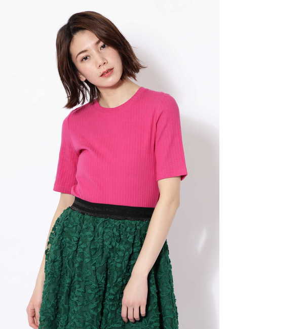 【送料無料】 リブでトレンド感をプラスしたカットソー。クルーネックラインが更に今年らしい表情です。ワイドパンツ、デニムやスキニーボトムにさらりと合わせるだけでサマになる優秀デザイン。機能性と着心地に優れたベーシックアイテムは色違いで揃えても重宝します。 ローズバッド/ROSEBUD ROSE BUD|トップス|Tシャツ・カットソー