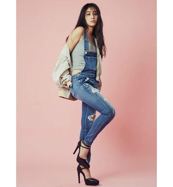 【送料無料】 大人っぽく着こなせるこだわりのディテールが魅力のサロペット。クラッシュ加工やハイライト加工を施しているので、レッグラインも綺麗に見えます。ショート丈トップスやヒールを合わせて女性らしさをプラスするスタイリングがおすすめ◎。 ジェイダ/GYDA パンツ|オールインワン