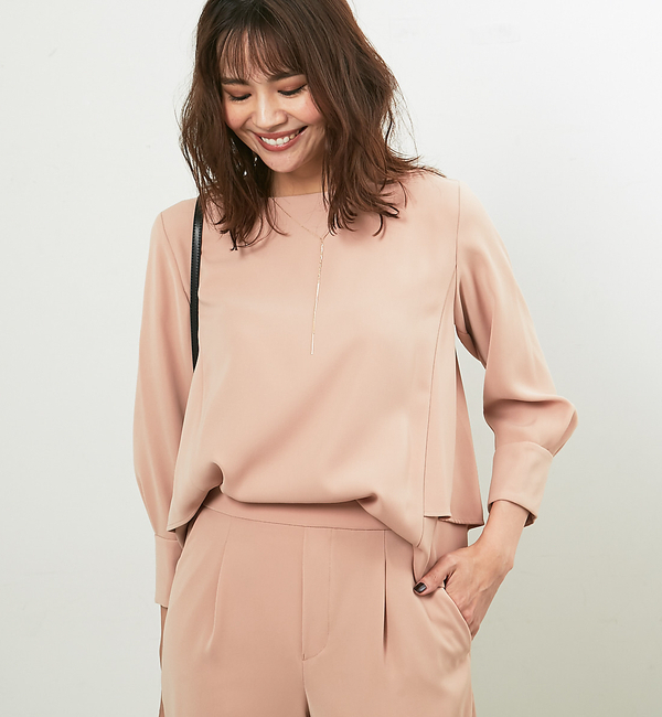 【送料無料】 高級感がある、しっかりとした肉厚な二重織りの素材を使ったブラウス。肩ではなく、袖口がパフスリーブになっているので上品さを演出してくれます。スカートに合わせるときにはウエストインして着こなすのがおすすめ。すっきりしたボートネックとは対照的に、背中にはデザインが入っているのがポイントです。(モスグリーン)model:H166・B80・W59・H86 着用サイズ:FREE(ピンクベージュ)model:H167・B84・W58・H86 着用サイズ:FREE(ブラック)model:H165・B80・W58・H85 着用サイズ:FREE ルージュ・ヴィフ ラクレ/Rouge vif la cle FONCE|トップス|シャツ・ブラウス