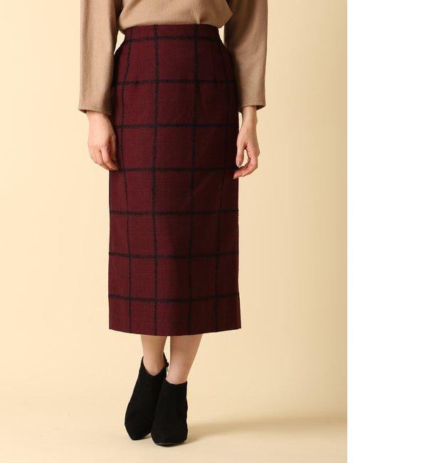 【送料無料】 今年トレンドのグレンチェックとボルドーのタイトスカートです。上品なミモレ丈とのバランス感が絶妙で、これからデイリーシーンでの着こなしで大活躍すること間違いなし。シンプルなトップスと好相性で、着こなしの幅がグンと広がります。・裏地あり・ウエスト後ろゴム仕様・後ろファスナー付き スーペリアクローゼット/SUPERIOR CLOSET 7-IDconcept.|スカート|スカート