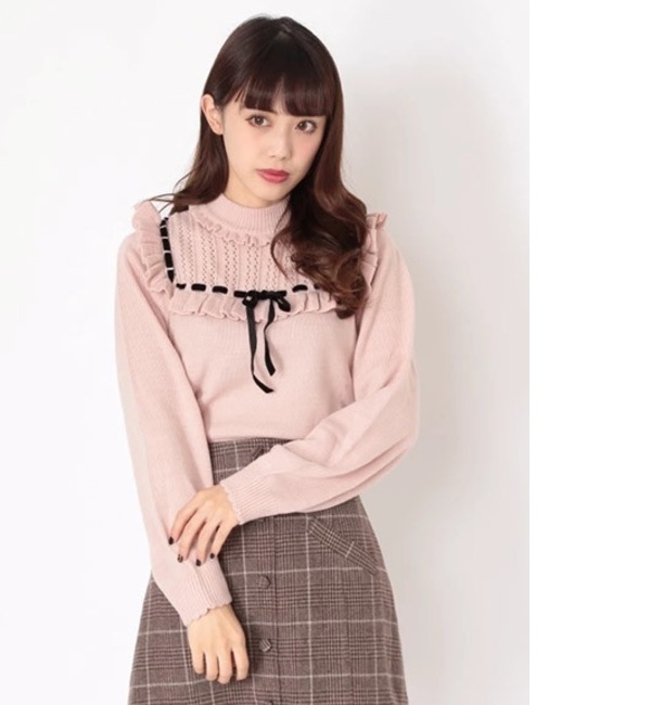 ヨークフリルリボンアイレットニット