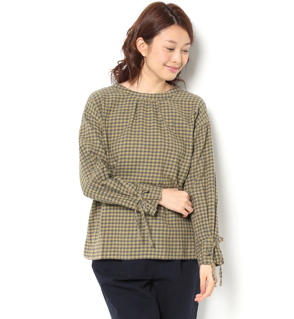 チェック前後着ブラウス