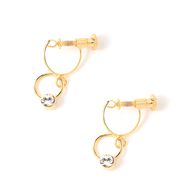 クリア ストーン Wフープ イヤリング