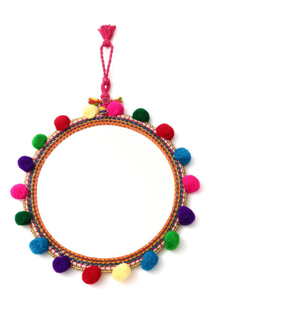 【送料無料】 1つ1つ丁寧に手作りで仕上げたエスニックなデザインのオーナメントです。センター部分は両面がミラーになっていて、その周りのカラフルな配色とポンポンデザインが目を引きます。とっても素朴で可愛い仕上がりです。温かみも漂いお部屋に飾れば癒されることは間違いないです!玄関飾りや赤ちゃんのおもちゃ飾りとしても重宝しそうです。【原産国】- ローズバッド/ROSEBUD ROSE BUD|インテリア・生活雑貨|その他