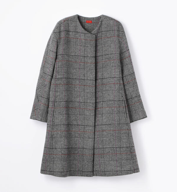 ウールチェック ノーカラーコート