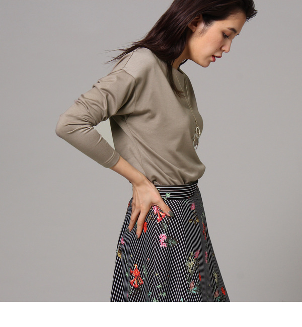 【送料無料】 ほどよい光沢感と柔らかな着心地がデイリー着にマッチするカット地のプルオーバー。気になるショルダーラインをカモフラージュしてくれるオフショルデザインは、こなれた雰囲気もプラスしてくれます。ボトムインもしやすく、オフにしてもスッキリまとまるのがポイントです。※カラーによって洗濯表示が異なります。洗濯表示・注意事項等は、本製品で御確認下さい。ホワイト(302)は透け感があるため、インナーの着用をおすすめします。サイズ違いの商品もご用意しております。R:127-14006 L:127-14707モデル情報:身長172cm B80 W60 H85 着用サイズ:38店舗へのお問い合わせ商品番号:127-14606主に春に着用いただける商品です。 インディヴィ/INDIVI INDIVI|トップス|Tシャツ・カットソー