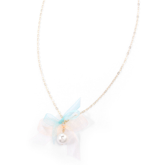 【3000円(税込)以上で送料無料】 2色の幅の違うオーガンジーリボンとパールがポイントのネックレス。透明感のあるリボンの重なりがきれい。華奢なチェーンも繊細さを引き立てます。 メランジェ マガザン/Melanger Magasin アクセサリー ・ヘアアクセサリー|ネックレス