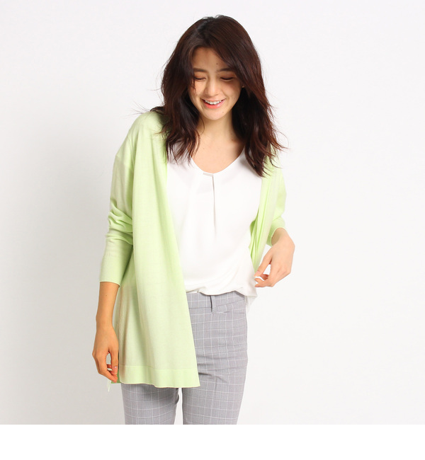 【送料無料】 スプリングカラーのカーデとインナーのツインアイテムです。ヒップがかくれる着丈がうれしいカーデは淡いスプリングカラーの展開です。裾のスリットは深めにし、着丈が長めでも重く見えません。インナーはネックのタックデザインがアクセントになったフレンチスリーブです。サイズ違いの商品もご用意しております。S:127-34801 L:127-34900モデル情報:身長172cm B80 W60 H85 着用サイズ:38店舗へのお問い合わせ商品番号:127-34400主に春に着用いただける商品です。 インディヴィ/INDIVI INDIVI|トップス|カーディガン