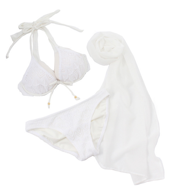 ナチュラルニット パレオ付きワイヤーレースレイヤードビキニ