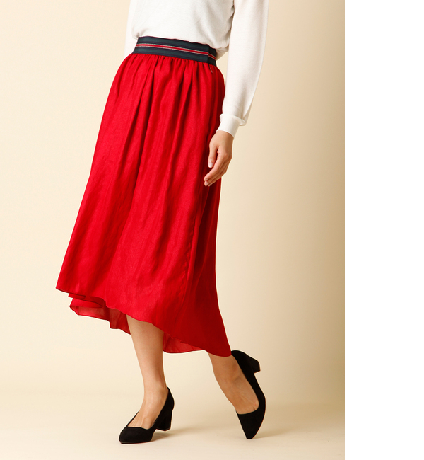 【送料無料】 フロントインすると、ウエスト部分のゴムデザインがさり気なくアクセントになるスカート。足さばきも良くストレスフリーな履き心地を実感して頂けます。トップス選びせずコーディネートにニュアンスと差し色を与えてくれる優れもの。デイリーユースに着回せる一押しアイテムです。・裏地あり ・ウエスト部分ゴム仕様 ・左サイドファスナー付き ・水洗い可 スーペリアクローゼット/SUPERIOR CLOSET INED L|スカート|スカート