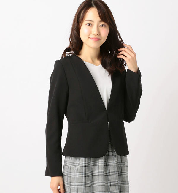 【送料無料】 滑らかで上品な質感のWクロスカラーレスジャケットです。フロントをフック式にしてすっきりとした印象にデザイン。袖口にはスリットを入れ折り返すことも可能に仕上げました。立体感のあるスマートなフォルムも魅力です。 ミューズ リファインド クローズ/MEW’S REFINED CLOTHES ジャケット・スーツ|ノーカラージャケット