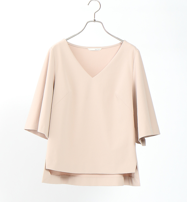 【送料無料】 以前からリクエストを沢山いただいていたqualiteの名品パンツとしてロングヒットを続けている2WAYストレッチパンツとセットアップで着ていただけるシンプルなトップスを作りました。袖のボリュームが今年らしく新鮮にうつり、程よいデコルテの開き加減が抜け感をプラスしてくれます。(オフホワイト)model:H166・B80・W58・H82 着用サイズ:38(カーキ/ピンク/ブラック)model:H169・B80・W60・H85 着用サイズ:38 カリテ/qualite qualite|トップス|シャツ・ブラウス