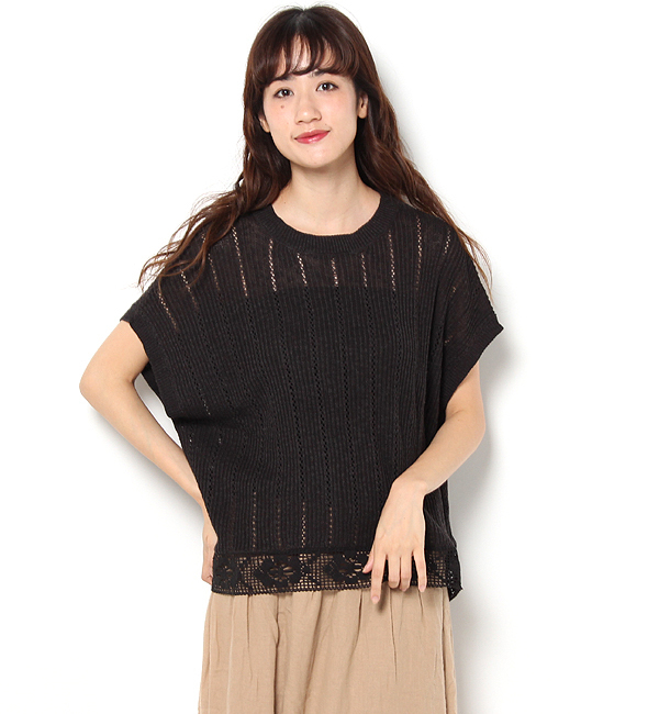 【3000円(税込)以上で送料無料】 裾に繊細なレースが施された、透かし編みデザインで、モダンフェミニンに仕上げたプルオーバー。センシュアル薫るほんのりとした肌見せが、女性らしさを引き立たせるカギ◎通気性もよくノンストレスな軽い着心地なのも魅力的。ボトムを選ばず幅広く使えるので、毎日のスタイリングに重宝する頼もしい1枚です。 サマンサモスモス/Samansa Mos2 トップス|ニット・セーター