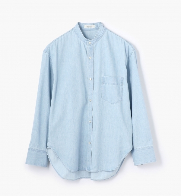 【送料無料】 クリアでドライなタッチが魅力のライトオンスデニムのシリーズ。ムラ糸を使用しており、ナチュラルでこなれ感のある表情に仕上げました。シャツはバックに施したタックが生み出すコクーンシルエットとスタンドカラーが新鮮なバランスの一着。そのまま着用するのはもちろん、フロントを開けてTシャツの上に羽織ったり、ニットとのレイヤードなど一枚あると様々なコーディネートに活躍するアイテムです。店舗にお問い合わせの際は、下記の品番をお申し付けください。品番:12017401031※※お取扱い上の注意※※・インディゴ染料を使用した素材を使用しています。染色の特性上、新しいうちは特に色落ちしやすく、他のものと擦れ合うと色移りします。新しいうちは白や淡い色の服と合わせてのご使用はお避け下さい。・この製品はブリーチ加工を施しているため光(紫外線)に非常に弱く、変色しやすい性質があります。洗濯干しや保管の際には十分ご注意下さい。(ライトブルーのみ) トゥモローランド/TOMORROWLAND MACPHEE|トップス|シャツ・ブラウス