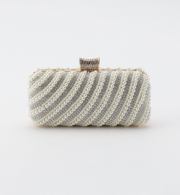 【送料無料】 パールとラインストーンのストライプ柄が華やかなクラッチバッグ。取り外しのできるチェーンもついており、両手を開けたいときにも可愛く使っていただけます。 ティアラ/Tiara バッグ|クラッチバッグ