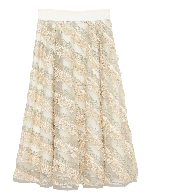 バイアスレースミディスカート