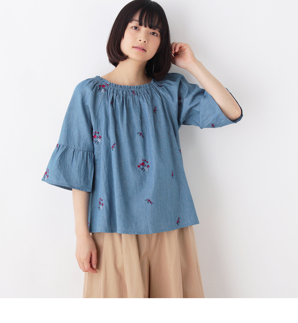 【3000円(税込)以上で送料無料】 ライトデニム生地にフラワー刺繍を入れたスモッグブラウス。ボリューム感のあるフレアスリーブがフェミニンな印象を与えてくれます。ワイドボトムスと合わせた旬なスタイリングをお楽しみください。モデル情報:身長165cm B74 W54 H82 着用サイズ:02(M)店舗へのお問い合わせ商品番号:540-83024主に秋に着用いただける商品です。 中国製 サンカンシオン/3can4on 3can4on|トップス|シャツ・ブラウス